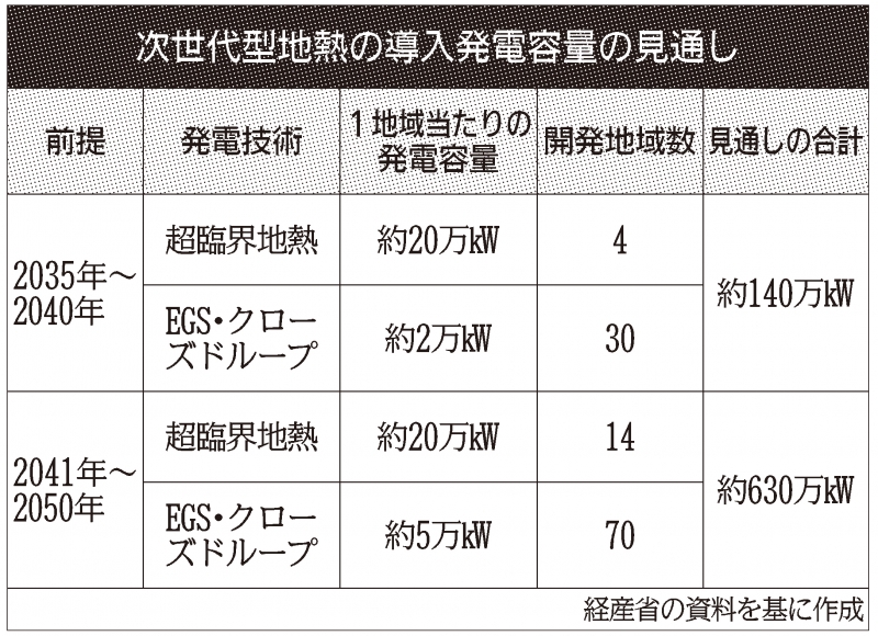 官民協議会では、地下3~6kmのマグマに近い熱源で大規模発電する超臨界地熱の開発も協議する。