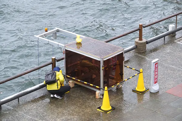 2025年9月、神戸市のスタートアップ企業「イエローダック」が、波の動きを利用した「波力発電システム」の実証実験に成功した。海上に浮かべた直径:3mの「浮き」が波力で揺れると、ワイヤで結ばれた重りも揺れに合わせて動き、往復するワイヤがモーターを回転させて発電する。